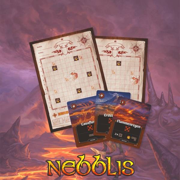 Nebblis: Es wird gemunkelt, dass die Schmieden der alten Zwerge auf magische Weise mit dem großen Vulkan Astmork verbunden waren. Das wollten die königlichen Kartographen selbst sehen. Jetzt stehen sie vor einem Berg, der Flammen in den rauchschwarzen Himmel einer anderen Welt spuckt. Dieser Ort könnte der Schlüssel zu großem Ruhm sein, wenn sie die Flüsse geschmolzenen Gesteins lange genug meiden können, um die Landkarte zu vervollständigen.