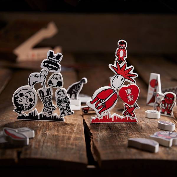 Das Dekor dieses Spieles erinnert an Volkers große Leidenschaft: Japan. Den Namen Little Tokyo übersetzen wir mal ganz frei: "Mit-ruhiger-Hand-dem-Gegner-einen-reinwürgen-damit-ihm-die-Minuspunkte-nur-so-um-die-Ohren-fliegen.Die Winkekatze Maneki-neko, der wütende Kaiju, der fette Arsch vom Sumoringer - stapele sie alle zu einem aberwitzigen Turm. Und sieh zu, dass deine Freunde nicht wissen, wie sie ihre Alna-Sharyo-Straßenbahn noch unterbringen. Oder einen anderen Klotz, den sie gerade am Bein haben. Das Ganze geht immer schön der Reihe nach! Entscheidend ist, dass dein Zeug oben bleibt und die anderen mit ungeschickten Fingern den Turm aus seinem Gleichgewicht bringen.