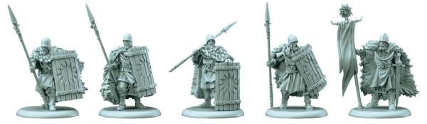 CMON (2022)Die Einheiten-Erweiterung A Song of Ice & Fire - Karstark Spearmen (Speerträger von Haus Karstark) bietet den Spielern des Hauses Stark eine neue Verteidigungseinheit auf dem Schlachtfeld. Bewaffnet mit robusten Speeren und großen Schilden warten sie geduldig auf den Angriff des Feindes und wehren selbst die brutalsten Angriffe ab. Ihre Ausbildung kommt insbesondere zum Tragen, wenn sie es mit einem einzelnen Feind zu tun haben, denn sie sind in der Lage, mögliche Positionsboni ihrer Gegner zu negieren.