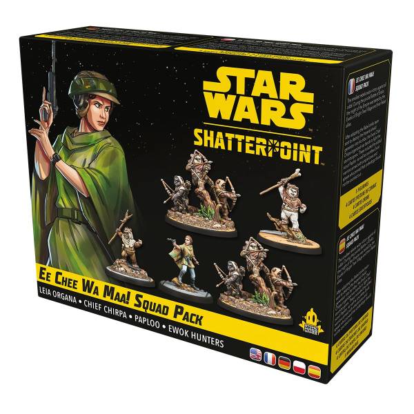 Atomic Mass Games (2024)Der Squad-Pack "Ee Chee Wa Maa!" beinhaltet kleine Ewoks des Strahlenden Baums zum Erstellen eines Einsatzteams für das Skirmish-Miniaturenspiel Star Wars™: Shatterpoint.