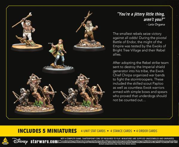 Nachdem Häuptling Chirpa den Rebellen-Stoßtrupp in seinen Stamm aufgenommen hatte, schickte er seine Krieger in den Kampf gegen die Sturmtruppen. Dazu gehörten der geschickte Späher Paploo sowie viele mit Speeren und Bögen bewaffnete Ewoks, die bewiesen, dass man auch die Kleinsten nie unterschätzen sollte.