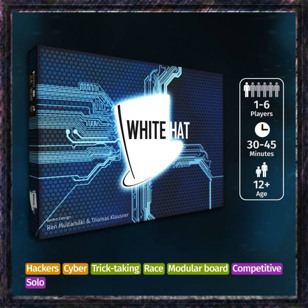 White Hat ist ein Brettspiel, bei dem die Spieler als gutmütige Hacker gegeneinander antreten und Sicherheitsschwachstellen ausnutzen, um sensible Daten zu schützen. Das Spiel basiert auf einem Stichspiel-Mechanismus und die Ergebnisse eines gewonnenen Stichs werden auf dem Spielbrett angezeigt. Es gibt einen Solo- und einen 2-Spieler-Modus.