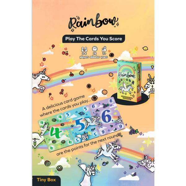 Allplay (2025)Rainbow is a quick-playing hand management game where players play solo cards, sets, or runs to win points on cards in the center of the table.