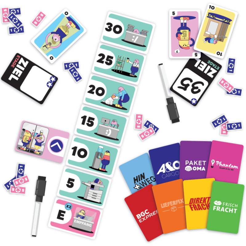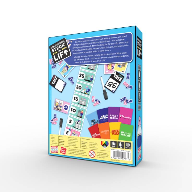 Schnapp dir deine Pakete, behalte die Konkurrenz im Blick, setze auf Taktik und Glück - und lass die anderen ohne Punkte dastehen, wenn sie feststellen: "Ich steck’ im Lift!"