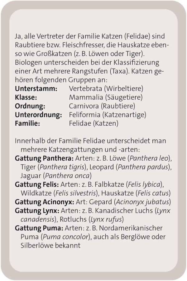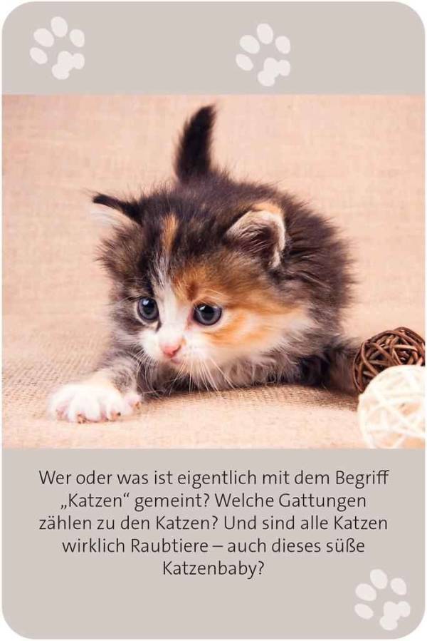 Moses Verlag (2025)100 Karten mit über 150 Fragen zum weltweit verbreitetsten Haustier, mit vielen Fotos und ausführlichen Hintergrundinformationen.