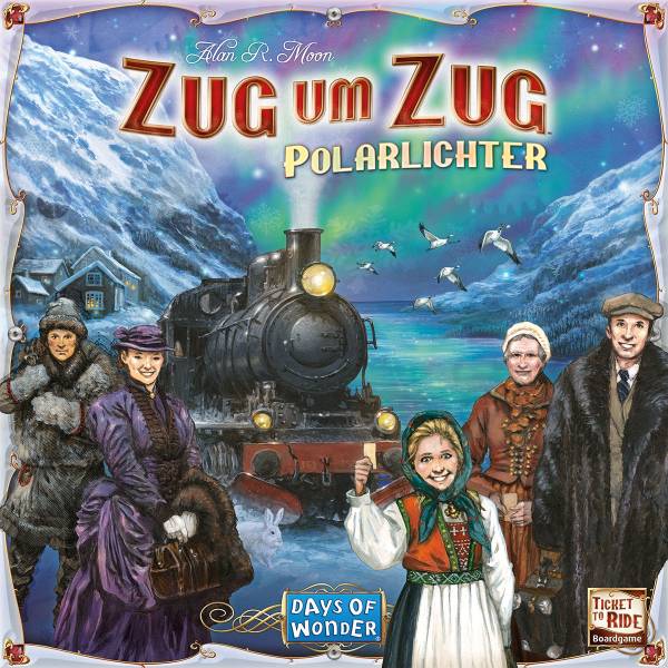 Days Of Wonder (2025)Zug um Zug: Polarlichter entführt euch in den hohen Norden. Setzt eure Wagenkarten ein, um Zug- oder Fährstrecken zu beanspruchen und verbindet die Städte auf euren Zielkarten. Achtet außerdem auf die 4 zufällig gezogenen Bonuskarten, die am Ende wertvolle Bonuspunkte bringen.