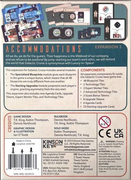 The Accommodations expansion for Galactic Cruise includes several modules, which may be played individually or in any combination with one another.
