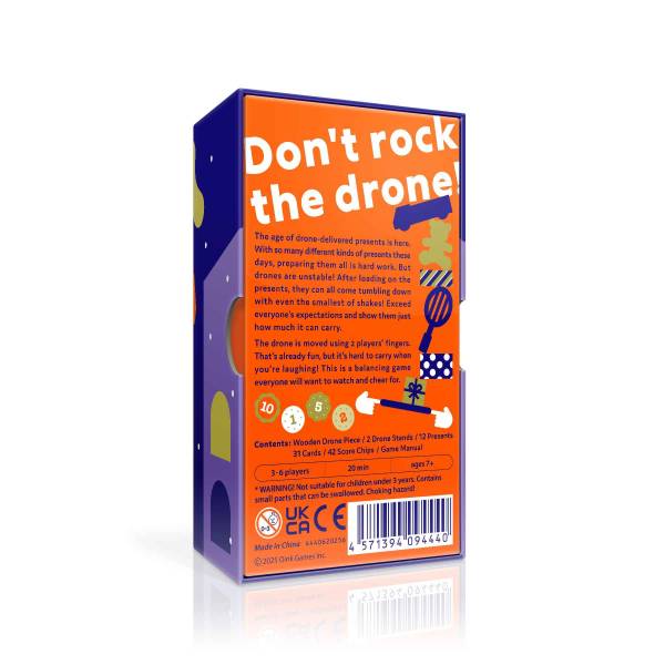 The drone is moved using 2 players' fingers. That's already fun, but it's hard to carry when you're laughing! This is a balancing game everyone will want to watch and cheer for.