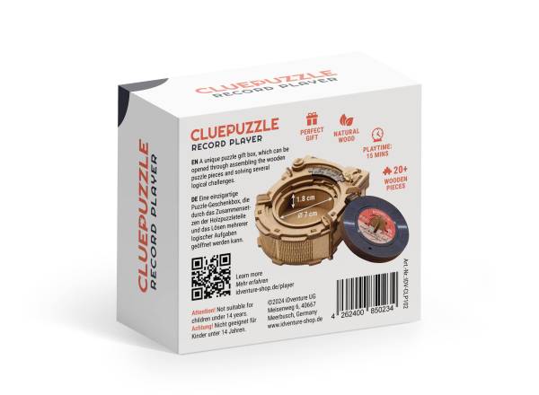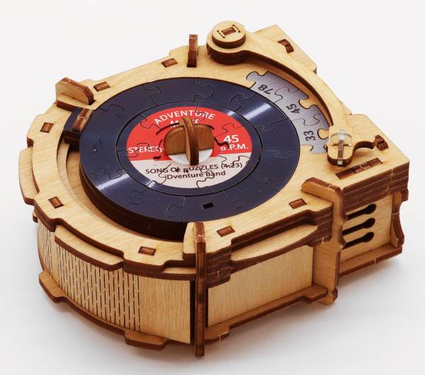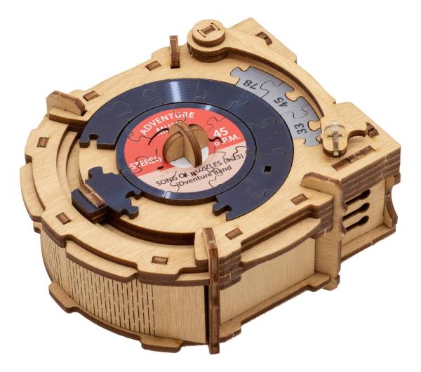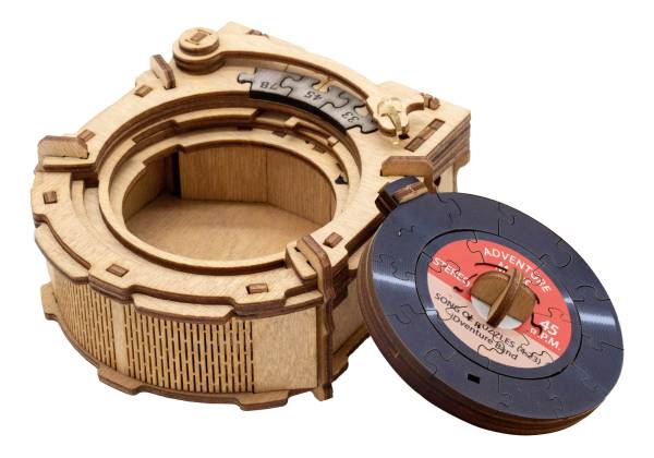 iDventure (2026)The Turntable CluePuzzle ist eine Geschenkbox, die durch das Lösen der Rätsel geöffnet werden kann. Wie bei der Sonnenpyramide ist das Zusammensetzen der Puzzleteile notwendig, um die mechanischen Schlösser der Schachtel zu öffnen.