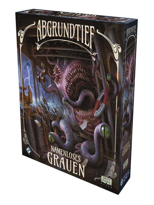 PYTHAGORAS10,90 €Mit Namenloses Grauen, der Erweiterung für Abgrundtief, gerät die S.S. Atlantica auf ihrer Fahrt nach Boston in noch schrecklichere Gefahr. Grauenhafte neue Monster erheben sich aus den Tiefen des Atlantiks, um das Schiff anzugreifen, und der Ozean selbst tobt und droht die Passagiere mit mörderischen Wellen über Bord zu werfen. Neue Verratskarten können das Schiff sabotieren und der Mythosstapel wächst auf die doppelte Größe an, um die Atlantica in jeder Runde vor neue Gefahren zu stellen. Aber glücklicherweise bekommen auch die Menschen an Bord neue Werkzeuge an die Hand. Neben 8 neuen spielbaren Charakteren gibt es nun Verbündete, die sich eigenständig auf dem Schiff bewegen und dabei helfen, es seetüchtig zu halten. Neue Prologkarten sorgen für unterschiedliche Startbedingungen, die jede Partie einzigartig machen. Mit neuen Fertigkeiten, Gegenständen und den brandneuen Gunstkarten wird der Kampf um die S.S. Atlantica so dramatisch wie nie zuvor.