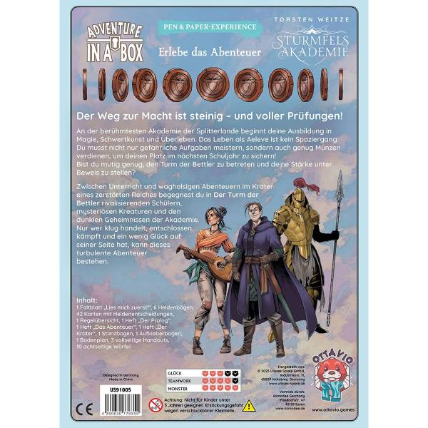 Ottavio (2025)Adventure in a Box: Sturmfels-Akademie – Der Turm der Bettler entführt euch in die fantastische Welt der Splitterlande-Romane von Torsten Weitze.