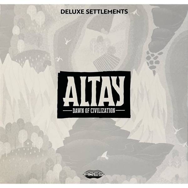 Ares Games Srl (2025)Das Altay – Deluxe Settlements Set ersetzt die Holzsiedlungen des Grundspiels durch 60 hochwertige Kunststoffminiaturen, veredelt mit Pre-Shade-Technik. Jede Fraktion erhält eigene, thematisch gestaltete Siedlungen, die das Spielmaterial optisch und haptisch aufwerten.