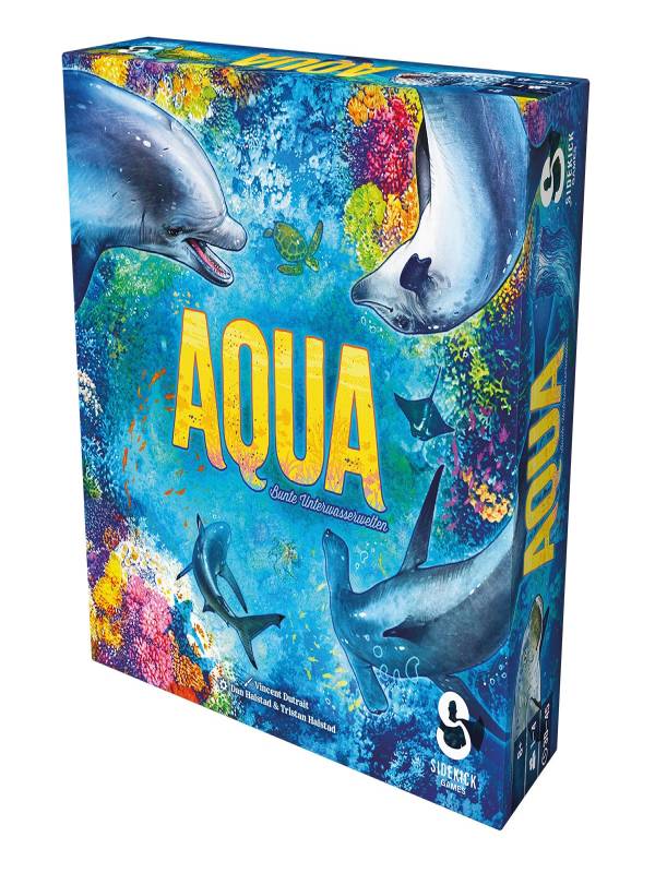 Cranio Creations25,90 €In Aqua: Bunte Unterwasserwelten züchtet ihr Korallen und schafft durch geschicktes Auswählen und Anlegen der Plättchen Lebensräume und Riffe für eine Vielzahl kleiner Meerestiere. Je mehr verschiedene kleine Tiere bei euch leben, desto eher lockt ihr auch große Meeresbewohner wie Mantarochen, Schwarzspitzen-Riffhaie oder Delfine an. Nach insgesamt 17 Runden gewinnt, wer mit seinen Korallen und Meerestieren die meisten Punkte sammelt.
