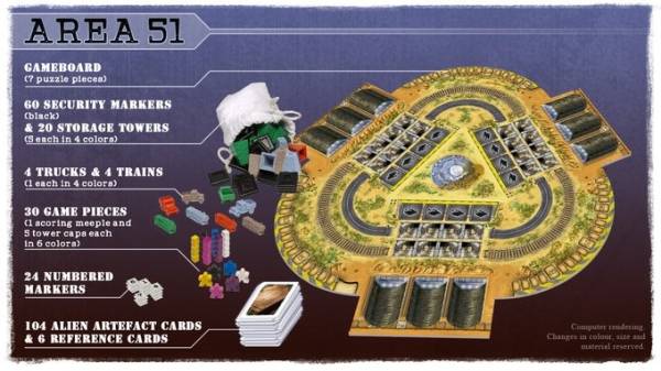 Area 51 ist ein kartengesteuertes Strategiespiel, bei dem es darum geht, außerirdische Artefakte sicher einzulagern. Die Spieler stecken in dem fortwährendem Dilemma knappen Bauplatz für die sog. Habitate zu besetzen, gleichzeitig diese Habitate aber auch auszubauen, um letztlich auch passende Lagerflächen zu haben.