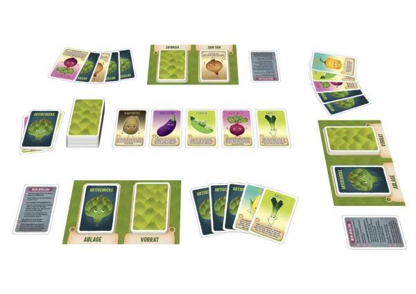 Das Ziel: Weg mit den Artischocken! Das gelingt, indem man seinen Vorrat mit anderen Gemüsesorten auffüllt und deren Aktionen nutzt, um Artischocken auf den Kompost zu befördern. Wer es schafft, beim Nachziehen von Gemüsekarten keine Artischocke mehr auf die Hand zu bekommen, gewinnt das Spiel.Â