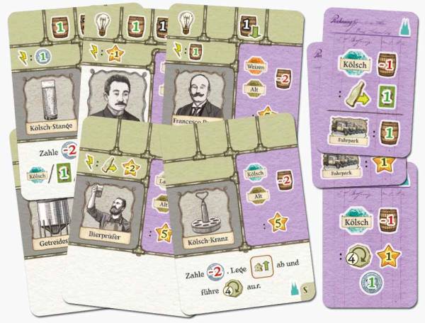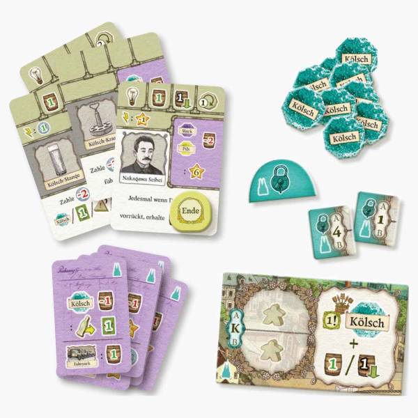 SpieleFaible (2025)Mit der Kölsch-Erweiterung erhalten 2–4 Spieler:innen eine zusätzliche Mini-Brauerei samt eigenem Kessel, Fasslager und Keller. Das Modul bringt nicht nur eine neue Biersorte ins Spiel, sondern auch exklusive Aktionskarten, Kölsch-spezifische Aufträge und ein neues Aktionsplättchen „K“.