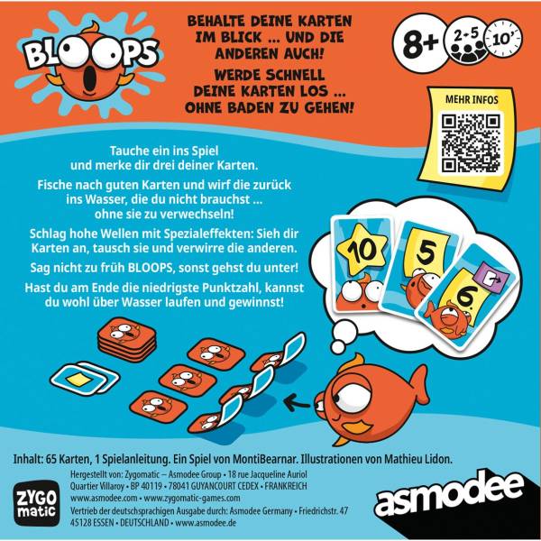 Zygomatic (2025)Bloops ist ein lustiges Partykartenspiel für die ganze Familie. Tauche ein ins Spiel und merke dir drei deiner Karten. Fische nach guten Karten und wirf die zurück ins Wasser, die du nicht brauchst... ohne sie zu verwechseln!