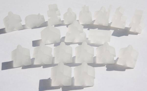Hans im Glück Verlag (2022)Ihr erhaltet ein komplettes Spielfiguren-Set (19 Meeple) des Carcassonne Grundspiels und aller Erweiterungen für einen Spieler in der "gefrosteten" matt-transparenten Farbe Farblos im Zip-Beutel.