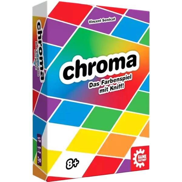 Chroma ist eine farbenfrohe Mischung aus Lege- und Ablegespiel, bei dem es gilt, als Erster alle Handkarten loszuwerden, indem man sie clever ins Farbraster auf dem Tisch legt.