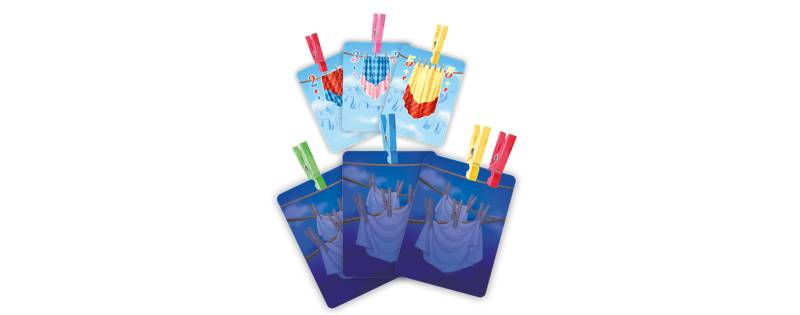 Gemeinsam gewinnen oder gemeinsam verlieren heißt es bei „Clips“, einem kurzweiligen Deduktionsspiel von Emanuele Briano. Darin müssen die Hersteller hochwertiger Textilien die Aufträge der Kunden erfolgreich bearbeiten. Aber Vorsicht: Schon wenige Fehler lassen die Wäscheleine reißen!