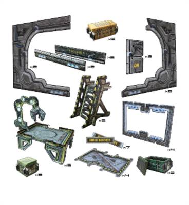 iDventure (2022)This pack contains everything you need to upgrade your sci-fi gaming table with a spaceship arrival hangar or loading bay.