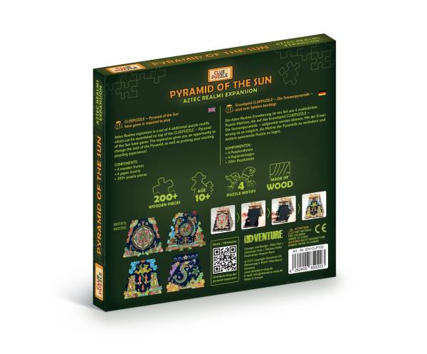 iDventure (2026)Wir haben die Sonnenpyramide so konzipiert, dass die Bilder des Grundspiels um eine zweite Ebene eines Puzzles ergänzt werden können. Das verlängert nicht nur das Puzzleerlebnis, sondern gibt dir auch die Möglichkeit, die Ästhetik der Pyramide zu verändern.