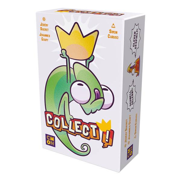 CMON (2025)Collect! ist ein rasantes Kartenspiel für 2‑5 Spieler, bei dem ihr im Dschungel um die Krone kämpft. Jeder Spieler baut reihum seine Auslage auf, zieht eine Karte und versucht, vier gleiche Tiere zu sammeln („Allianz“) – doch jedes Tier verfügt über eine spezielle Fähigkeit, die das Spiel jederzeit auf den Kopf stellen kann. Wer clever spielt, bleibt flexibel – und kann gewinnen!