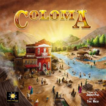 Coloma is the town where an unexpected event happened that shaped history of the Western Frontier. In the Winter of 1848 a man building a sawmill on the South Fork of the American River spotted some bright nuggets in the tailrace waters below. Sure enough, it was gold! Though he tried to keep his discovery a secret, word spread quickly and it triggered the California Gold Rush of ‘49. In the game of Coloma, you are a pioneer who has recently traveled out West to strike it rich and make a name for yourself. You will prospect for gold and use your windfalls to recruit workers, rustle up horses, and establish businesses. You will also get opportunities to explore the surrounding riverways and frontier lands. But alas! You are not alone—every other pioneer seems to have gotten the same idea! Therefore, it will take extra cunning tactics on your part to not go Bust with the rest of them...Coloma is a fast moving game with many paths to victory. It offers unique twists on simultaneous action selection, resource management, and engine-building.