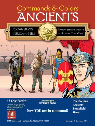 GMT Games Inc. (2014)A combined reprint of Commands & Colors: Ancients Expansion Pack #2 – Rome and the Barbarians and Commands & Colors: Ancients Expansion Pack #3 – The Roman Civil Wars with all of the individual components (separate scenario books, etc.) of those products, but without the boards originally included with them.