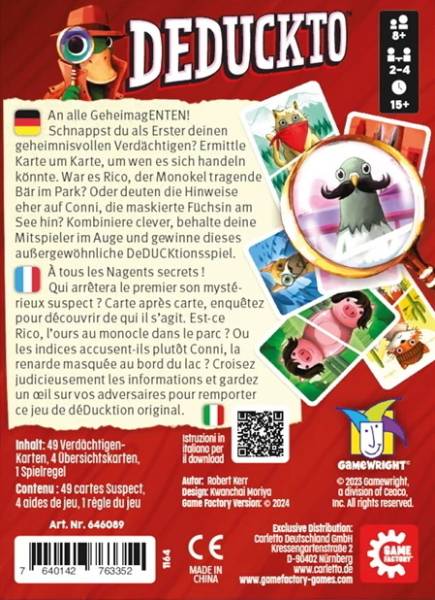 Kombiniere clever und behalte deine Mitspieler im Auge und gewinne dieses außergewöhnliche DeDUCKtionsspiel.