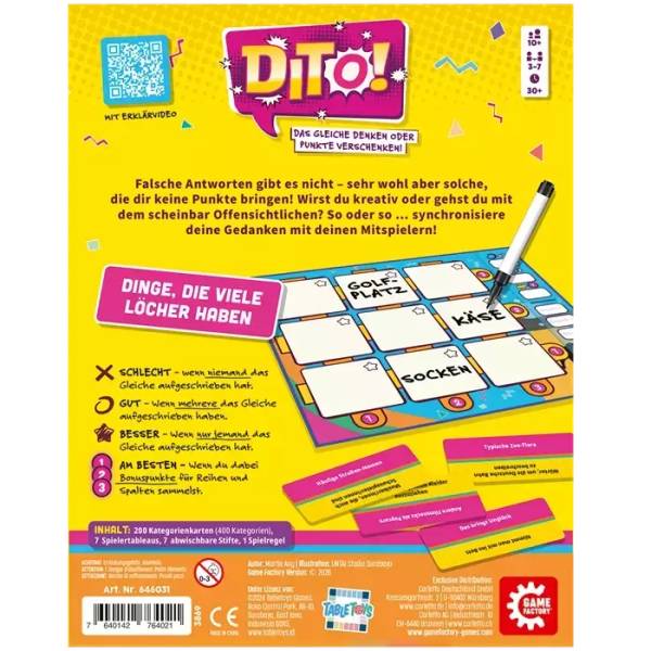 Kommunikatives Partyspiel mit abwechslungsreichen Kategorien von klassisch über kreativ bis kurios. Einfache Regeln, schneller Einstieg.