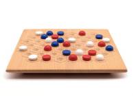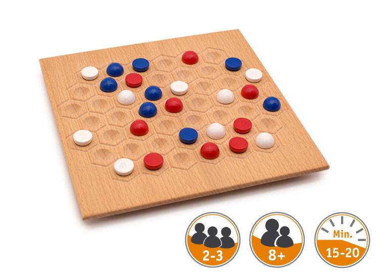 Ein Spiel aus Holland, die Spielsteine sind Halbkugeln in rot, weiß, blau - so wie die Landesfarben unserer Nachbarn. Jeder Spieler hat Spielsteine einer Farbe.