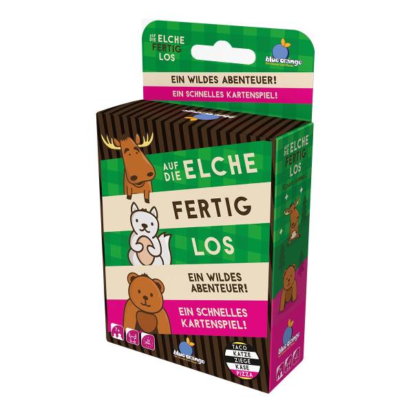 Im rasanten Reaktionsspiel von den Machern von "Taco Katze Ziege Käse Pizza" sammelt ihr Kartensätze von Elchen, Bären oder Eichhörnchen, aber müsst euch vor Yetis und Lawinen hüten – sonst verschwinden eure Paare in der Wildnis! Jeder Spieler nimmt eine Karte vom Stapel. Alle rufen „Auf die Elche, fertig, los!“, klatschen ihre Karte auf den Tisch und versuchen, die beste Karte zu ergattern, um ein Paar zu bilden. Der erste Spieler, der drei Sätze von Tieren gesammelt hat, gewinnt diese chaotische Kartenklopperei!
