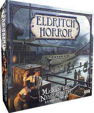 Eldritch Horror: Masken des Nyarlathotep ist eine Erweiterung für Eldritch Horror. Neu sind vor allem persönliche Geschichten, die für jeden Charakter einzigartig sind, und eine eigene Kampagne mit ganz neuen Herausforderungen.