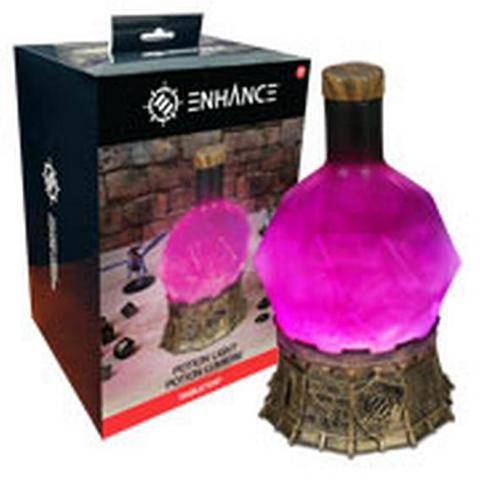 Accessory Power (2025)ENHANCE Tabletop Potion Light Turn your game room, bedroom or anywhere else into a magical scene with this themed mood light. The potion inside swirls and glistens with multicolor LED illumination to transport you to a world of fantasy. The durable polyhedron bottle sits on top of our ENHANCE themed castle base to match with all of your other ENHANCE tabletop accessories.