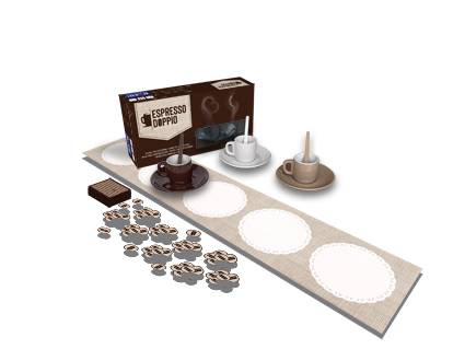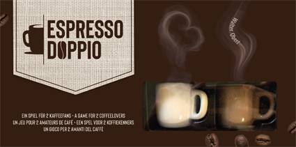 Huch & Friends (2021)Mit Geschirr spielt man nicht? Stimmt nicht immer! Bei ESPRESSO DOPPIO ist das sogar unbedingt gewünscht. Die je drei Espressotassen, Untertassen und Löffel in unterschiedlichen Farben werden hier von zwei Spielern munter hin und her bewegt. Denn nur so können die gewünschten Kombinationen auf den Aufgabenkarten erfüllt werden. Wer besonders aufmerksam ist, am cleversten tauscht und so den stärksten Service liefert, hat am Ende die meisten Kaffeebohnen und gewinnt.