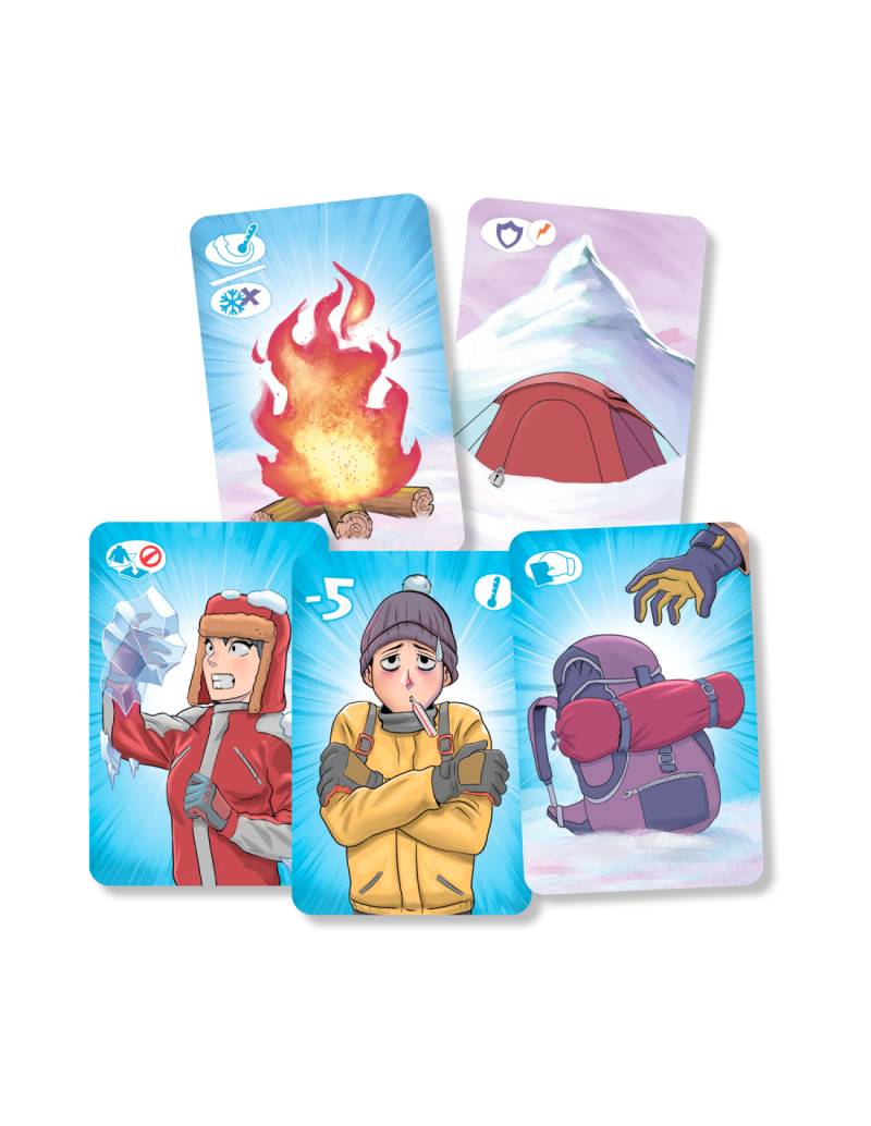 On your turn, you must choose one of the following three options: play a clothing card, play an action card, or improve your hand. Equip your climber with clothing and special items and play action cards against your opponents.