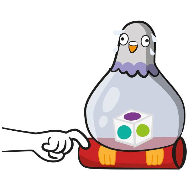 Wenn du an der Reihe bist, drücke den Knopf an der Unterseite der Taube, um die Zeitschaltuhr (und das Gurren) zu starten. Als Nächstes schüttelst du die Taube und musst die Aufgabe übernehmen, die der Farbe des Würfelergebnisses entspricht: Schauspiele, zeichne auf der Taube oder duelliere dich – aber was auch immer du tust, sei schnell! Gib die Taube weiter, bevor sie auf der Seite deines Teams explodiert und der Gegner einen Punkt einsackt. Das Team, das zuerst drei Punkte erspielt, gewinnt.