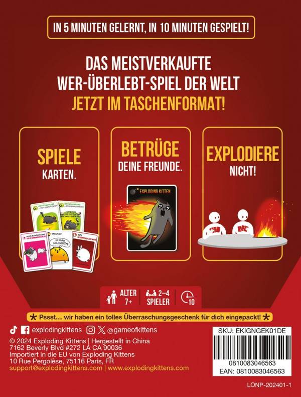 Mebo21,90 €Mit Exploding Kittens: Grab & Game kommt euer liebstes explosionsstarkes Katzen-Partyspiel im Taschenformat, damit ihr es überallhin mitnehmen und liebhaben könnt.