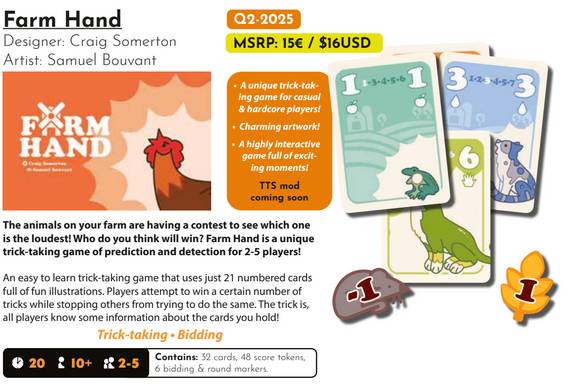 Grail Games (2025)Farm Hand is a fun and engaging 21-card micro game that neatly fits in your pocket or purse and can be played almost anywhere.