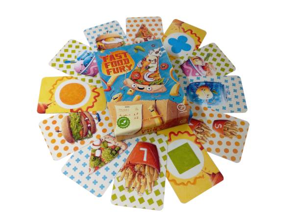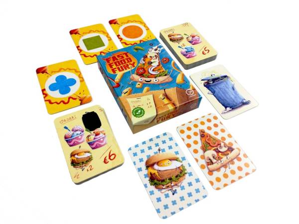 Every player simultaneously flips open a fast food card and tries to hit the product they need for the order their working on. If they were the first, they win the product and strategically place it with their order. They need to be smart with their products, to be quicker and better than the other team(s).