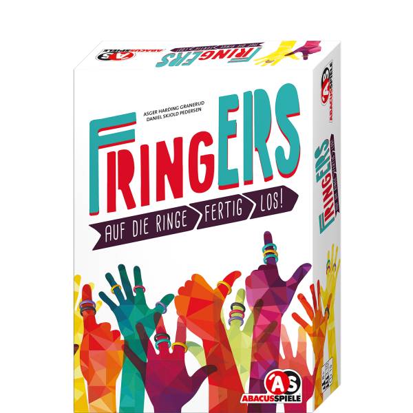 Abacus Spiele (2020)Fringers ist ein actiongeladenes kooperatives Erlebnis. Ihr spielt alle zusammen als Team und müsst die Ringe auf euren Fingern richtig anordnen, bevor die Zeit abläuft. Doch ihr dürft nur Ringe an euren linken Nachbarn weitergeben, während ihr gleichzeitig von eurem rechten Nachbarn - die hoffentlich richtigen - Ringe erhaltet.