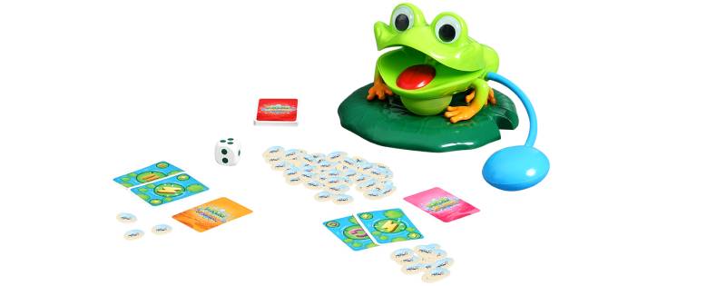Piatnik (2026)Wer traut sich, dem frechen Frosch Froggy das Mittagessen zu stehlen? Auf seine Mücken passt er besonders gut auf und warnt potenzielle Langfinger mit einem zarten Wasserstrahl. Ein wenig Würfelglück und schlau eingesetzte Handkarten verhelfen zum Sieg.