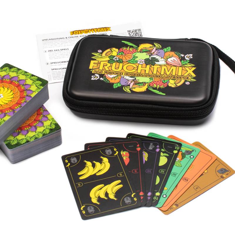 In Fruchtmix erwartet euch ein cleveres Kombinationskartenspiel für 2 oder 4 Spleler. Spiele alleine oder im Team.