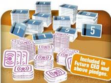 The Deluxe Bits add on includes acrylic Money and Ad Tokens that will replace the punchboard Money and Ad Tokens included in the base game.