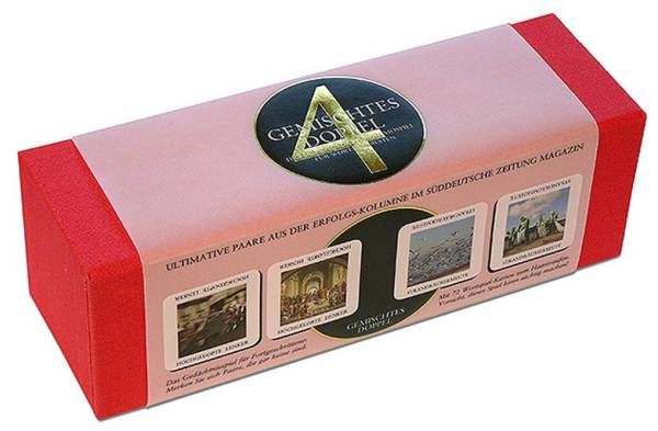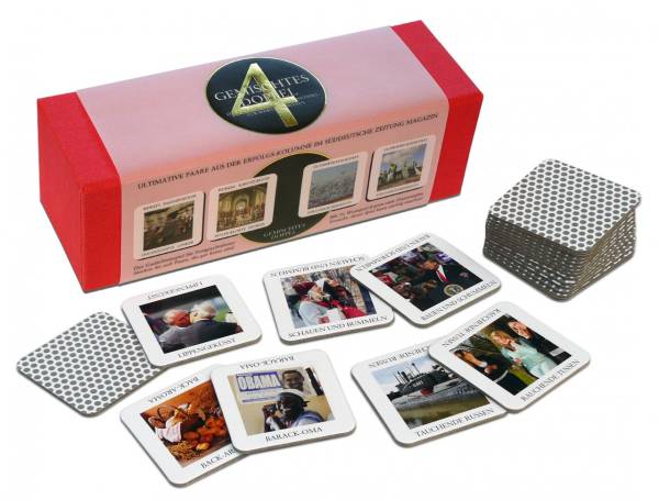 Die Memospielausgabe Gemischtes Doppel 4 zeigt sich auf der Höhe der Zeit und nimmt etwa das immer noch aktuelle Massendoping unter Radlern aufs Korn: Hochgedopte Lenker – Hochgelobte Denker aber auch Politisch-Gesellschaftliches: Zanksilbe – Zinksalbe.