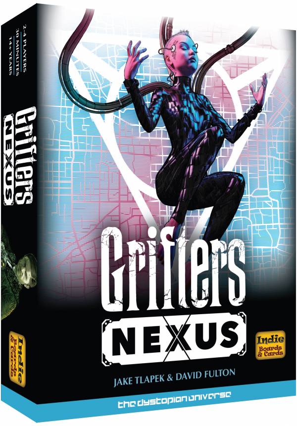 Grifters: Nexus is a standalone game that is also an expansion for Grifters, which was released by Indie Boards and Cards in 2016. Nexus uses the same core "cool downmechanisms found in Grifters, and introduces 15 new specialist cards, new mechanisms and a new job card system.