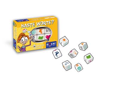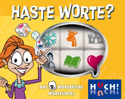 Huch & Friends (2021)Würfeln, Thema aussuchen, Motive kombinieren und Wörter dazu aufschreiben! Wer die meisten Wörter findet, die kein anderer aufgeschrieben hat, gewinnt! Mit Haste Worte - Das wortreiche Würfelspiel haben bereits 8 bunte Würfel Einzug in die Haste- Worte-Familie gehalten. Ab 2021 werden die Würfel mit Haste Worte - das 2. wortreiche Würfelspiel ergänzt und zeigen neue Motive für noch kreativere und witzigere Spielerunden!