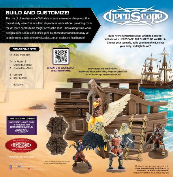 Renegade Game Studios (2025)The seas of Valhalla are unforgiving. With piracy on the rise and ocean battles raging, wrecked vessels and battered cargo wash ashore, littering the coastline with fragments of war. These broken hulks and abandoned weapons now stand as cover, obstacles, and strategic vantage points in the battles to come.
