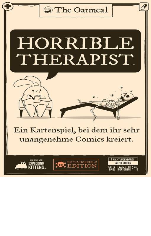Mebo21,90 €Im Partyspiel Horrible Therapist erstellt ihr kurze furchtbare Comics in einer imaginären Therapiesitzung. Wer die lustigste finale Karte spielt, gewinnt.